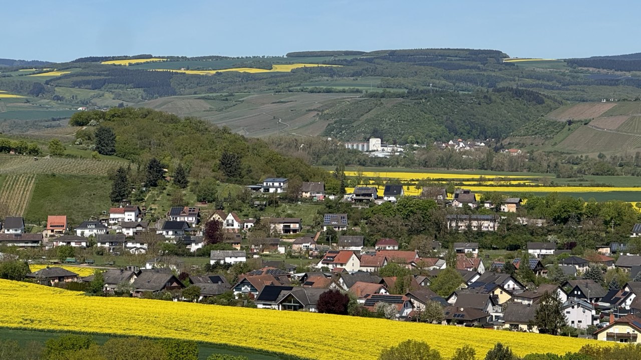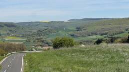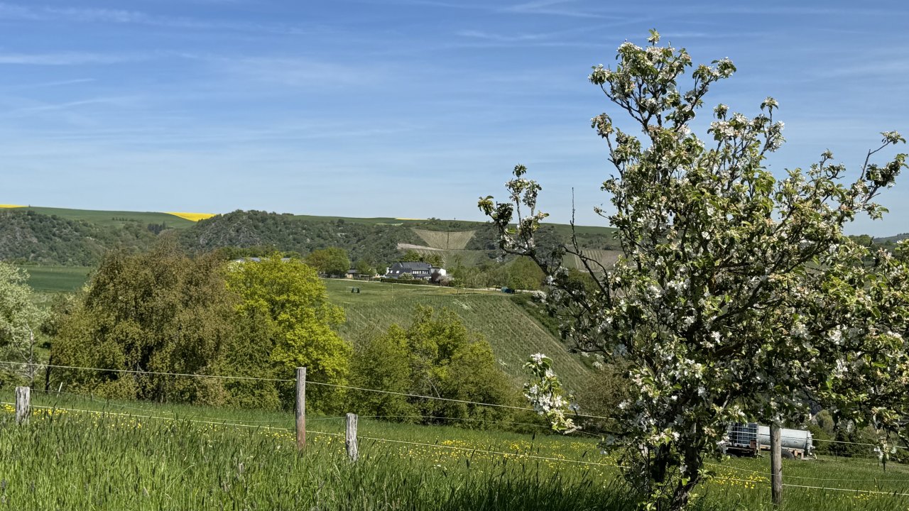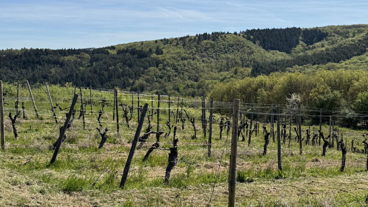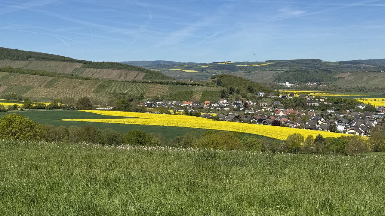 Auf dem Weg dorthin wurde die Landschaft wieder deutlich hügeliger, und ich kam erneut durch eine Weinregion. Weinberge links und rechts, dazu immer wieder Höfe und Läden, in denen Wein hergestellt, verkauft und verkostet wird. Ich bin sogar kurz in die Weinberge hineingefahren und habe dort ein paar Fotos gemacht. Gleichzeitig war wieder dieser typische Frühlingsmix allgegenwärtig: Rapsfelder, gelbe Landschaft, intensiver Geruch in der Luft. Es ist schon erstaunlich, wie sehr eine Gegend nicht nur anders aussieht, sondern plötzlich auch anders riecht.