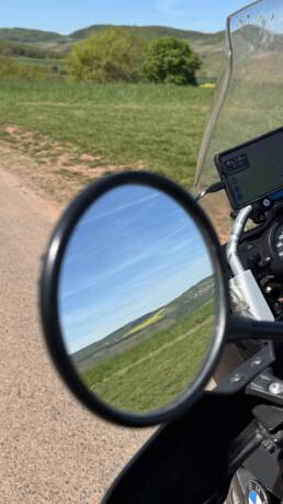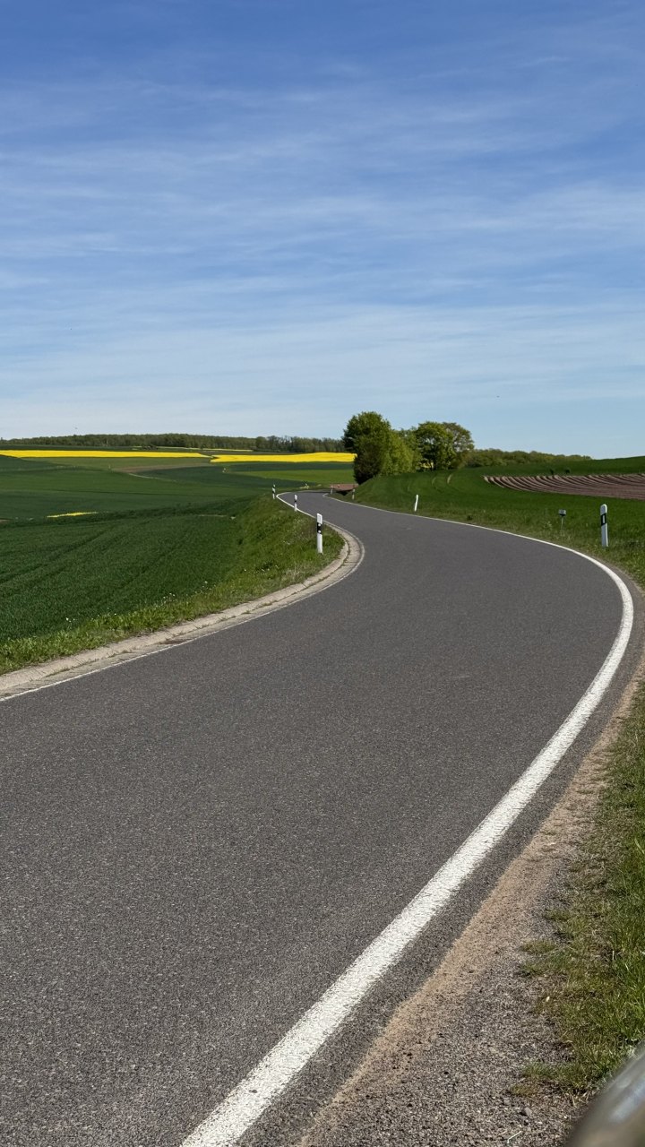 Später wurde dann auch deutlich, dass der Frühling inzwischen nicht nur schön aussieht, sondern in Motorradklamotten langsam anstrengend werden kann. Solange ich fuhr, war alles noch angenehm. Aber sobald es durch Ortschaften, Baustellen oder stockenden Verkehr ging, wurde es schnell zu warm. Irgendwann war deshalb klar: Es ist völlig okay, wenn heute schon gegen 15 Uhr Schluss ist.