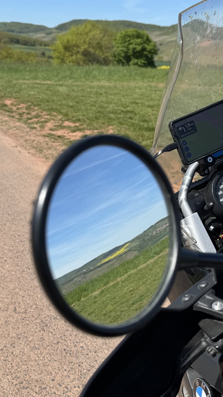 Fazit: Heute war einer dieser Tage, an denen die Strecke selbst den Hauptteil übernimmt: Burgen, Kurven, Weinberge und Frühlingsfarben haben den Weg nach Norden ziemlich schön gemacht. Ganz ohne Restnervosität wegen der Kupplung ging es zwar nicht, aber unterm Strich war das ein richtig starker Fahrtag. 🏍️